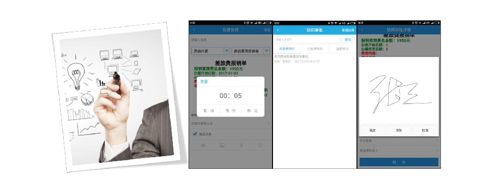 系統(tǒng)內(nèi)置靈活的工作流引擎,可通過(guò)自定義菜單配置請(qǐng)示審批、項(xiàng)目申請(qǐng)、項(xiàng)目匯報(bào)、費(fèi)用申請(qǐng)等表單功能,通過(guò)自定義工作流程進(jìn)行多個(gè)協(xié)作步驟的權(quán)限配置,結(jié)合Office在線編輯、電子簽章等應(yīng)用技術(shù)實(shí)現(xiàn)工作發(fā)起、審批流轉(zhuǎn)等協(xié)同辦公自動(dòng)化的功能。